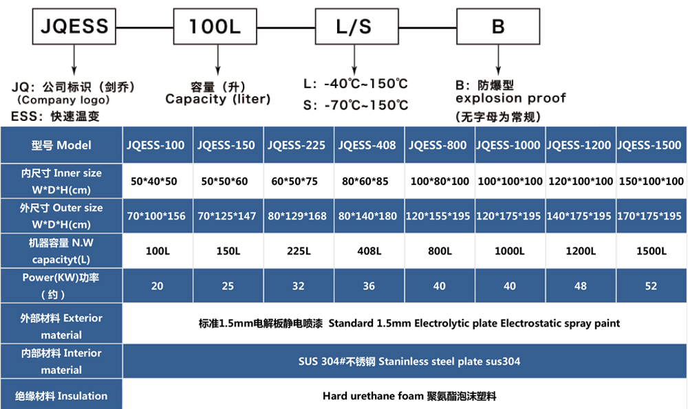 • 快速溫變試驗(yàn)箱型號(hào)命名說明 及 參數(shù)表