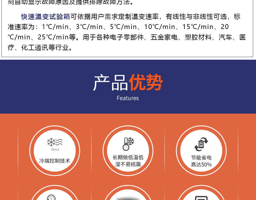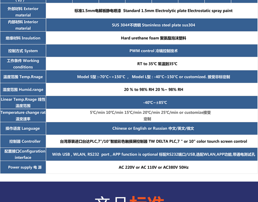 用途:快速溫變試驗(yàn)箱主要用來測試各種材料耐熱、耐寒、耐干、耐濕的性能。本機(jī)采用中英文顯示彩色觸控式屏幕畫面,操作簡單,程序編輯容易,可顯示完整的系統(tǒng)操作狀況相關(guān)數(shù)據(jù)、執(zhí)