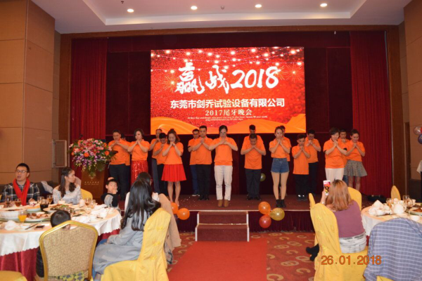 2018年元月26日,劍喬試驗設備于塘廈匯華酒店成功舉辦了2017年尾牙晚會,會上高朋滿座,劍喬總經(jīng)理在會上發(fā)表致辭,表達了對各位合作伙伴一年以來大力支持的感謝,更是總結(jié)了2017年劍喬公司一年里的收獲及成長,并給優(yōu)秀員工及突出貢獻的人員給予表彰。再對劍喬2018年定下了發(fā)展目標及期許,晚會在一片歡樂祥和中進行。