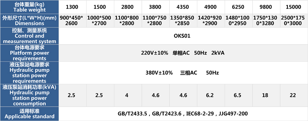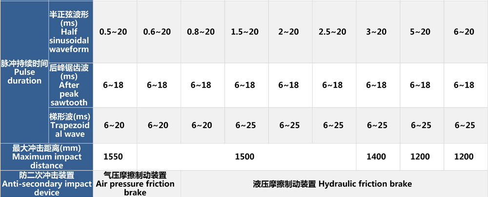• 高加速沖擊試驗機參數表